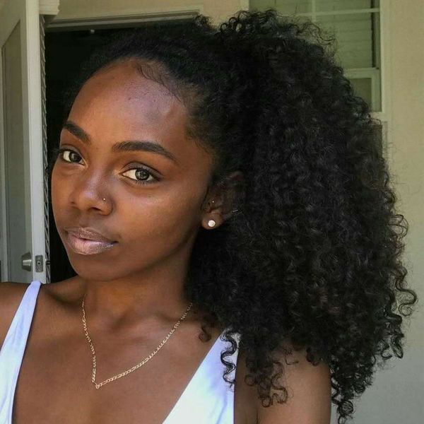 Get the look of freshly curled hair without the damage of harsh chemicals with a curly african american wig. Curly blends best with hair types 3b. Kalyss 8 lightweight black synthetic loose curly hair extensions loose twist drawstring ponytail hairpiece with two clips.